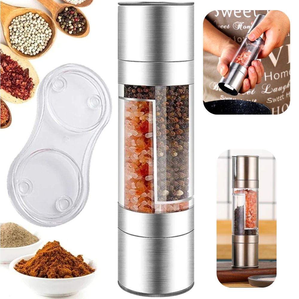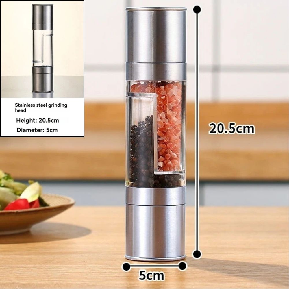 2-in-1 Salz-, Pfeffer- und Gewürzmühle aus Edelstahl | Verstellbares Keramikmahlwerk