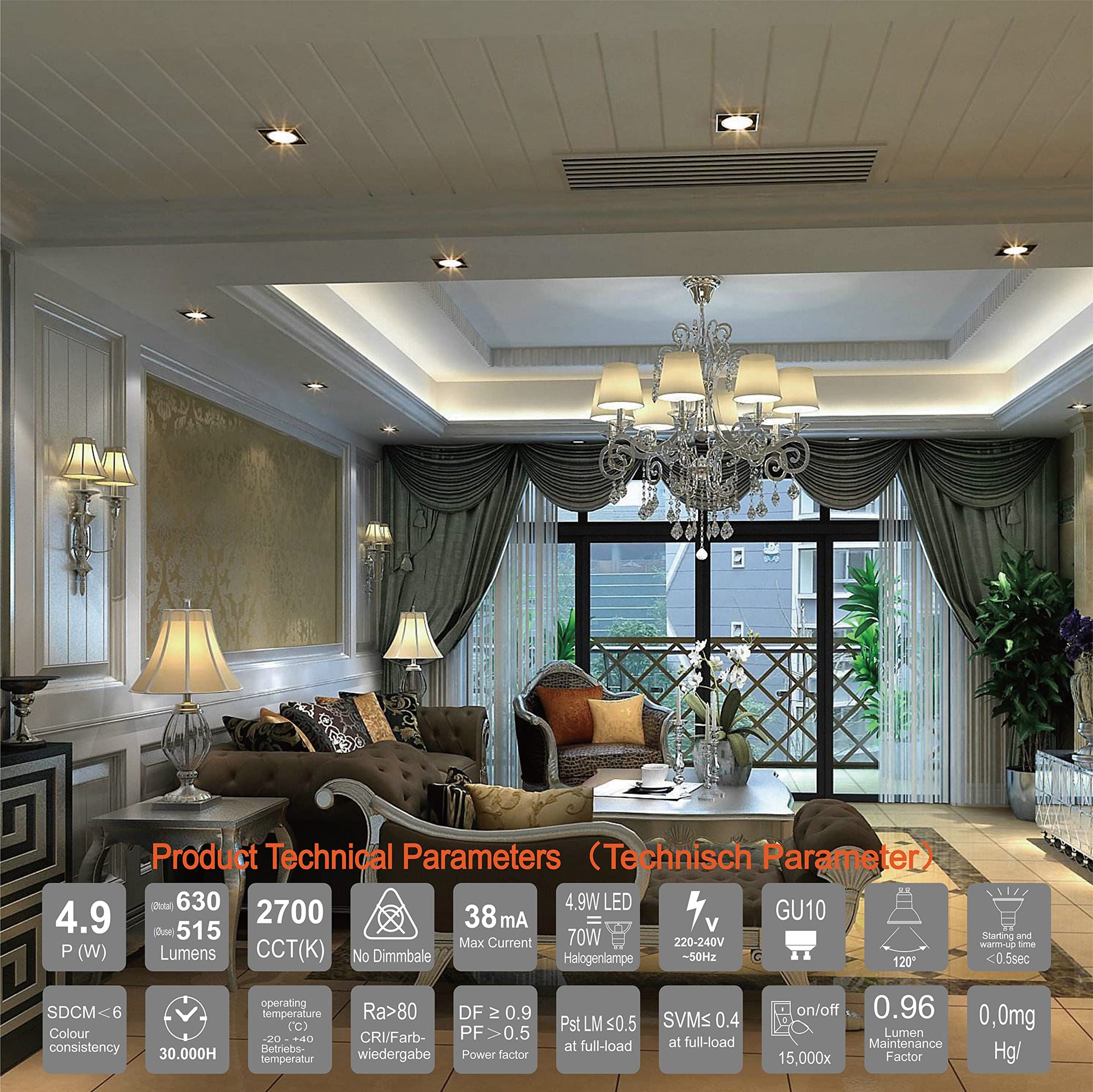 Die LEDs sind flimmerfrei, gesundheitlich unbedenklich und eignen sich ideal für Innenräume wie Wohnzimmer oder Küche. Sie lassen sich ohne Trafo direkt in GU10-Fassungen einsetzen.