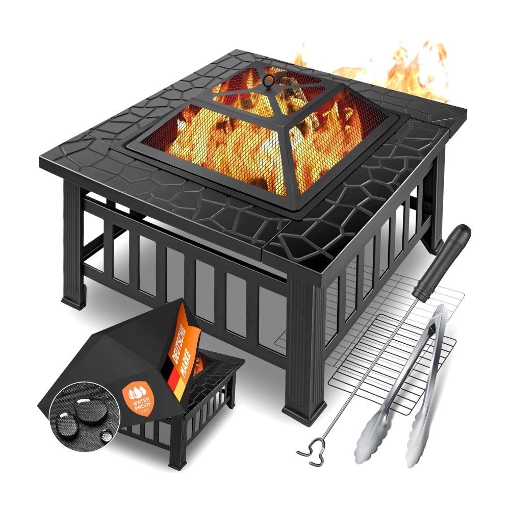 KESSER® Feuerstelle mit Grillrost & Grillzange: Feuerschale, BBQ Grill mit Funkenschutz