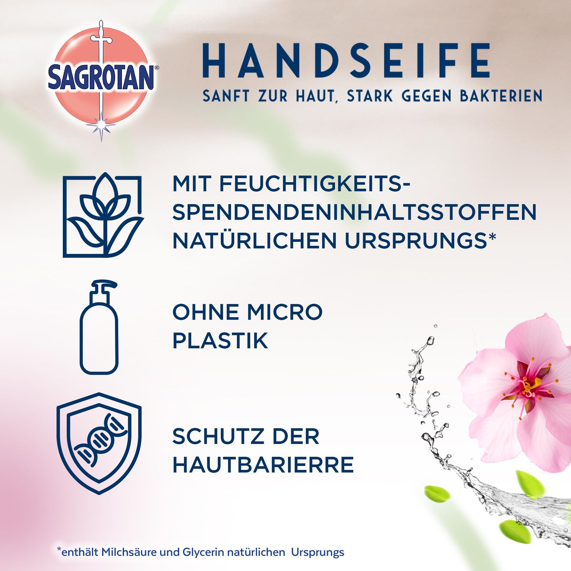 Die Sagrotan Handseife Belebend und Floral reinigt sanft und pflegt Ihre Haut mit einer feuchtigkeitsspendenden Formel, die Milchsäure und Glycerin enthält. Die flüssige Seife sorgt für hygienische Sauberkeit und hinterlässt ein geschmeidiges Hautgefühl. Der frisch-fruchtige Duft nach Japanischer Kirschblüte und Apfel bietet ein angenehmes Dufterlebnis und ist besonders für empfindliche Haut geeignet. Dermatologisch getestet garantiert die Seife eine ausgezeichnete Hautverträglichkeit.