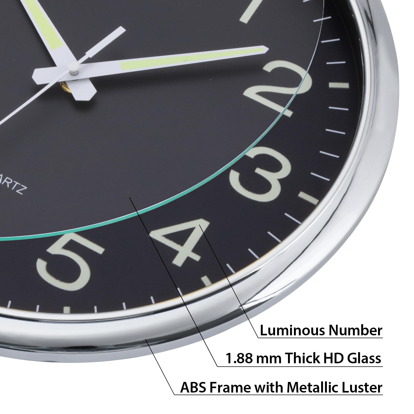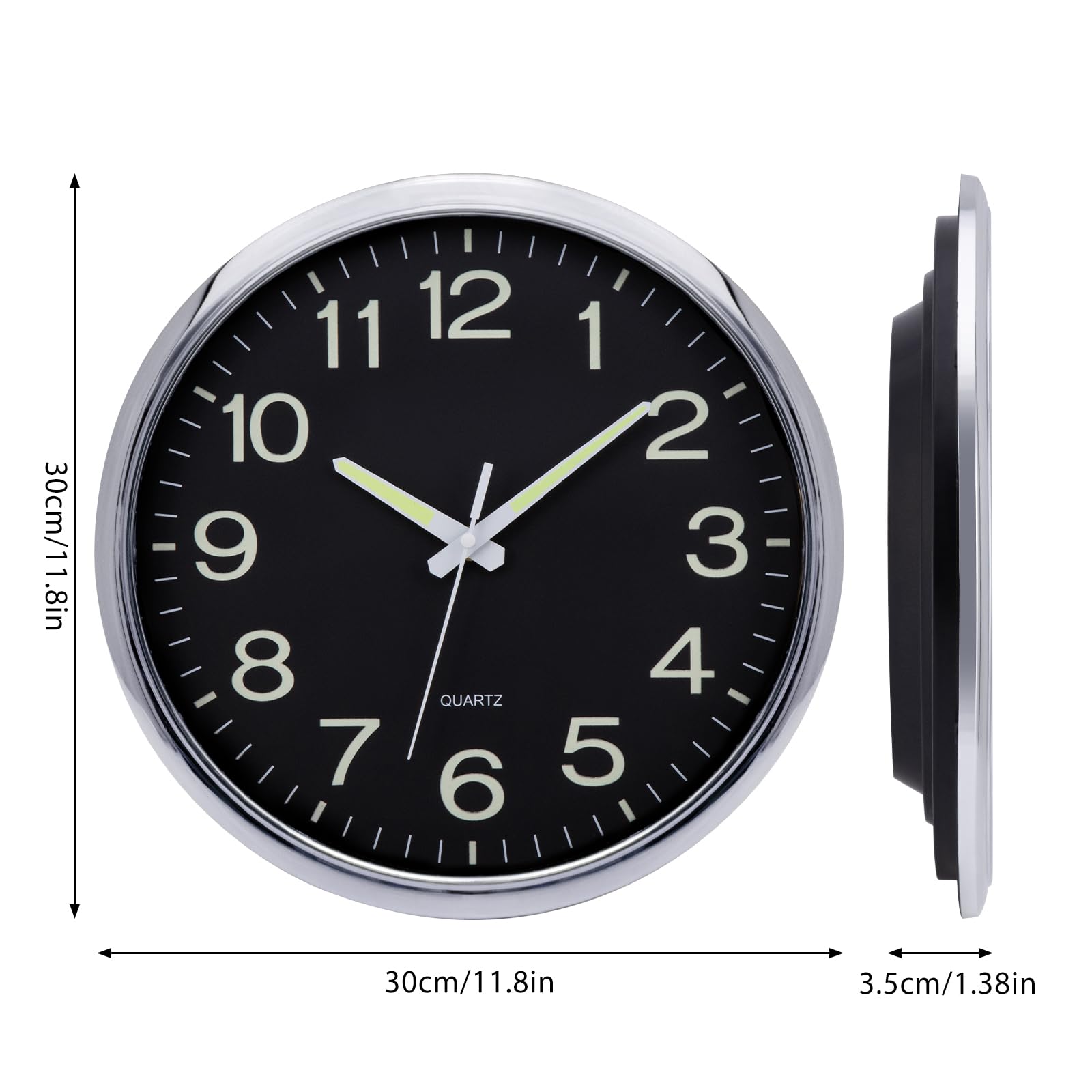 Diese moderne 30cm Wanduhr in Silber überzeugt mit leuchtenden Zahlen und geräuschlosem Betrieb - perfekt für Wohnzimmer, Schlafzimmer oder Büro.