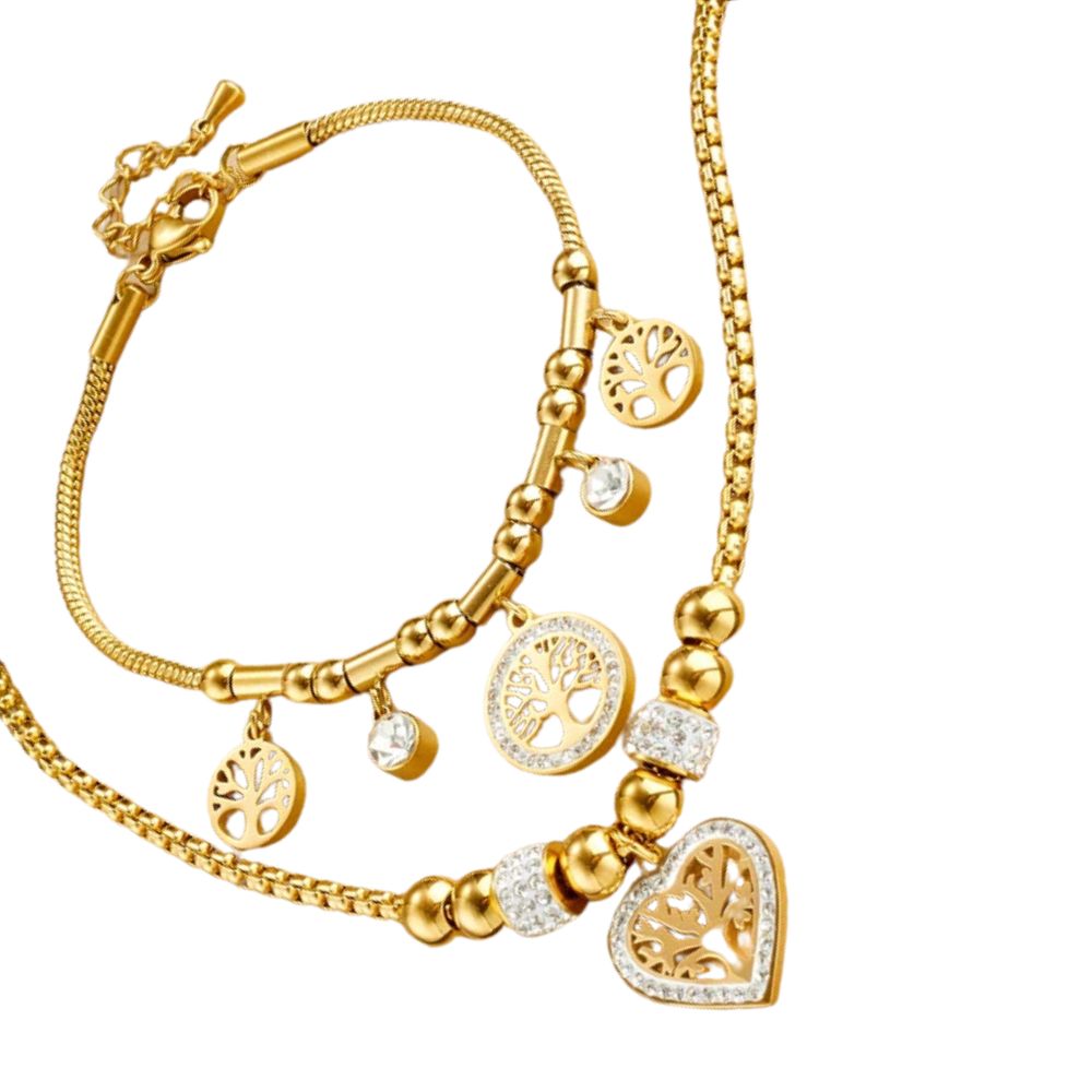 316L Edelstahl Schmuck-Geschenkset für Damen: Halskette & Armband mit Herz- und Lebensbaum-Anhänger