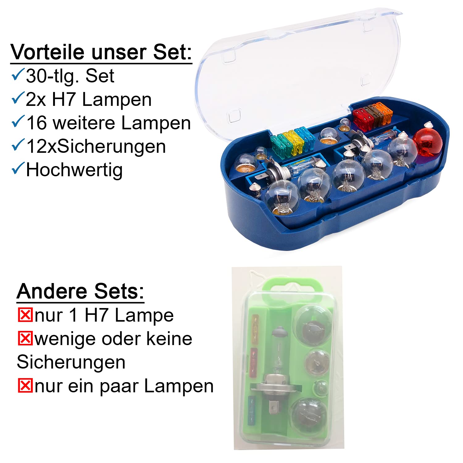 bemiX Auto Ersatzlampen-Set H7 30-tlg mit Autosicherungen im Ordnungsbox