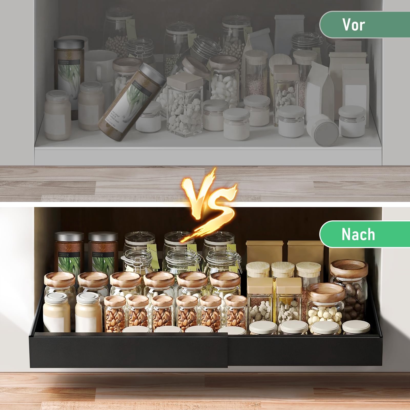 ICARE Einstellbare Kohlenstoffstahl-Teleskopschublade (32-52cm): Ausziehbarer Küchenorganizer